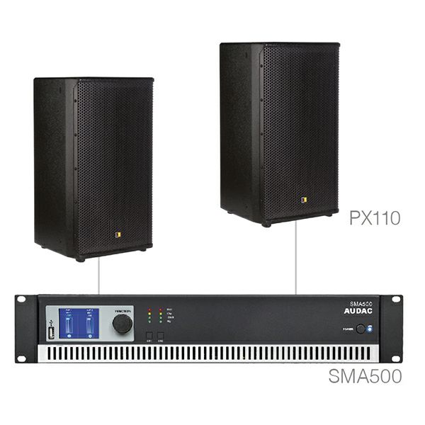 - SMA 500, 2-kanalno pojacalo snage Audac SMA 500 (2x500W, frekvencijski raspon: 20Hz-20kHz, RS-232 kontrola i USB konfiguracija, LCD zaslon)