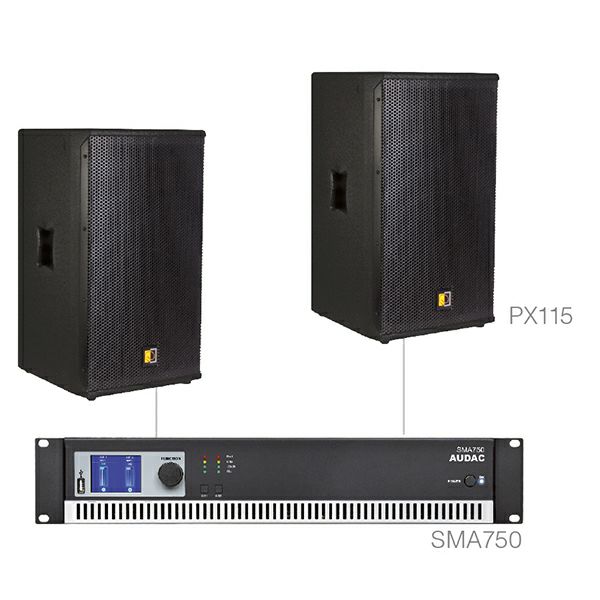 - SMA 750, 2-kanalno pojacalo snage (2x750W, frekvencijski raspon: 20Hz-20kHz, RS-232 kontrola i USB konfiguracija, LCD zaslon)