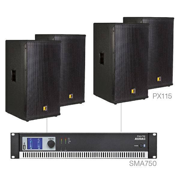 - 4x PX115, aktivni zvucnik (2-sistemski, 15" - 8 Ohm, 300W RMS snage, 600W maksimalne snage, frekvencijski raspon: 60Hz-19kHz )