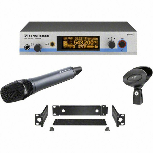 Bežicni mikrofonski set Sennheiser ew 500-945 sastoji se od prijemnika, super-kardioidnog dinamicnog mikrofona i kvacice za mikrofon. Mikrofon koristi super kardioidnu kapsulu koja omogucava reprodukciju zvuka visoke kvalitete, zaštitu od mikrofonije i pozadinske buke. Prijemnik je moguce ugraditi u ormar audio i video opreme.