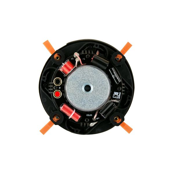 High-end 2-way ceiling speaker; Slim grill with thin border (1 mm); Elegant & unobtrusive design; Warm & true to nature sound; Paintable front grill; 1” + 5” aluminium membrane drivers; 50 Watt RMS power; Gold-Con™ connections; Quick and simple mounting